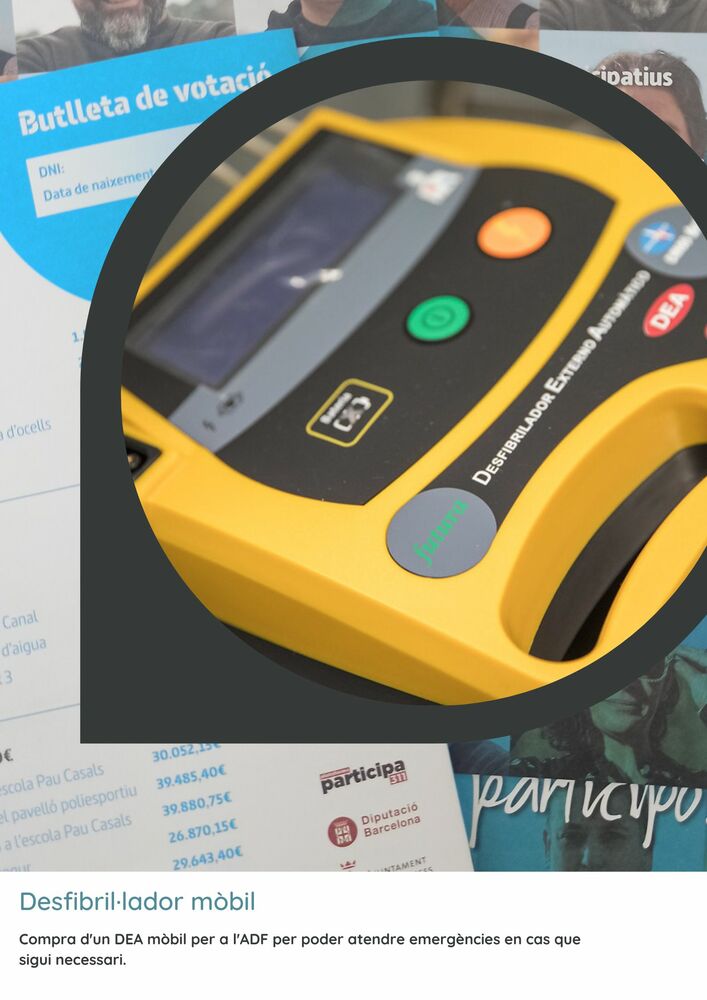 Compra d'un DEA mòbil per a l'ADF per poder atendre emergències en cas que sigui necessari.